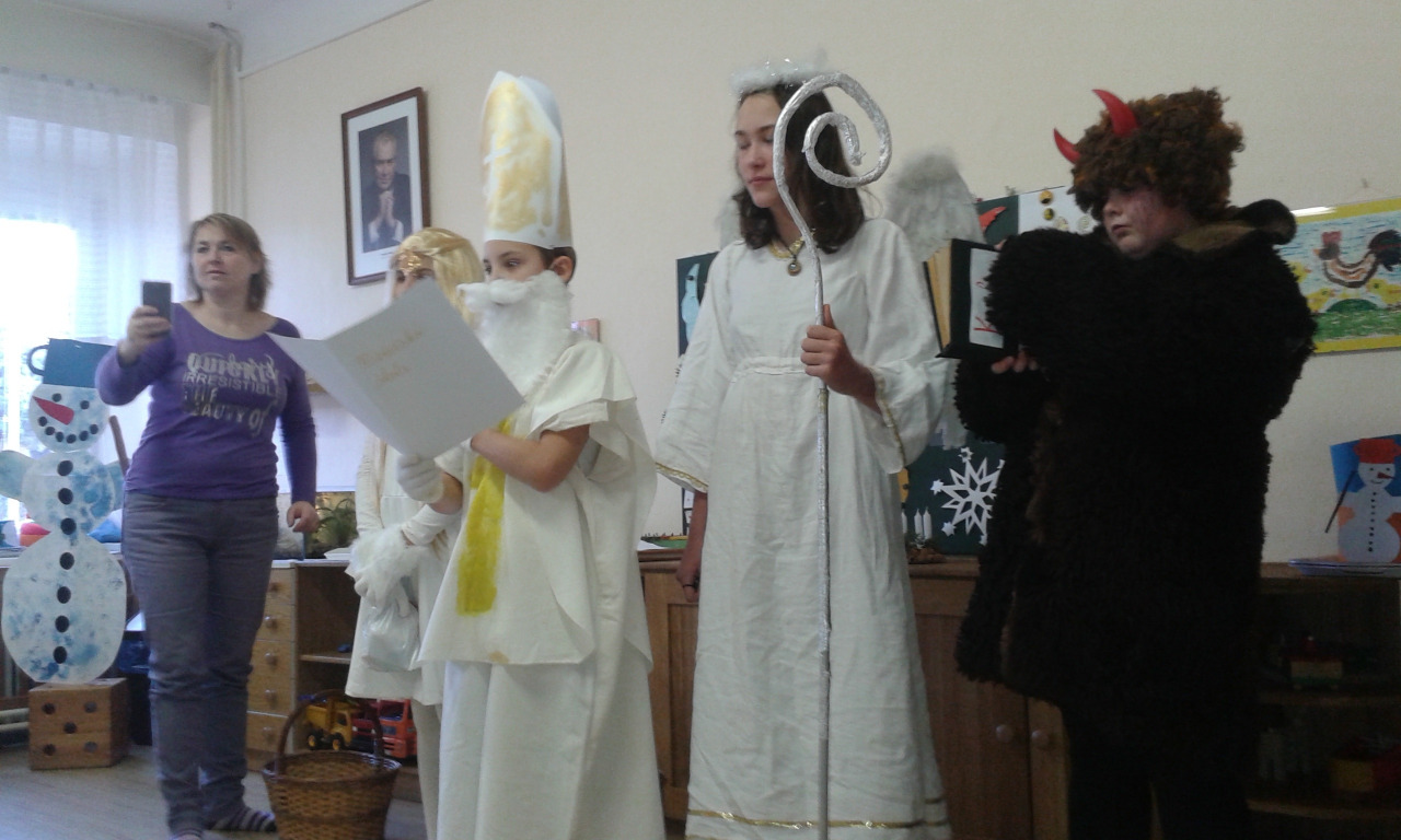 V pátek přišel do školky Mikuláš se svou družinou. Celou akci pěkně připravili naši páťáci s paní učitelkou Šerákovou. Děti za připravené básničky dostaly od Mikuláše sladkou odměnu. I přes "napjatou" atmosféru na nás dýchl adventní čas.