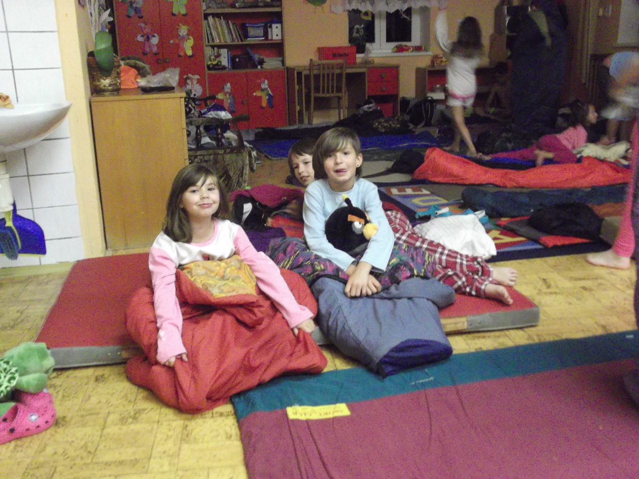 V pátek, 26.9., jsme přespali ve škole. Byl to večer plný zábavy a plnění úkolů. Mírné nepohodlí nikomu nevadilo, spaní se dohánělo v sobotu doma.